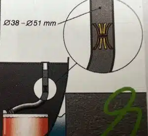 – Geschikt voor slang met een doorsnede van 38mm en van 51mm inwendig