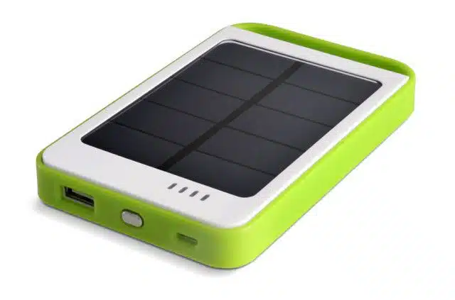 Lichtgewicht uiterst efficiente solar oplader/powerpack, voorzien van 6000mAh Lithium polymeer accu.