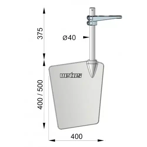 Roer, roestvast staal L= 400 mm. incl. roerarm