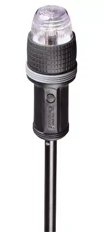 qua Signal 27 navigatielantaarns op batterijen voor meer veiligheid en het beter herkennen van kleine boten in de schemering. Voor boten <7m, max. 7 knopen. Zwarte rubberen omkasting, waterdicht, drijvend. Lens van zeewaterbestendig kunststof, uitwisselbaar. Gebruikt 4 AA/Mignon 1,5V batterijen (niet inbegrepen). Met aan/uit schakelaar.