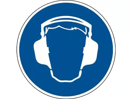 Sticker Gehoorbeschermer verplicht.